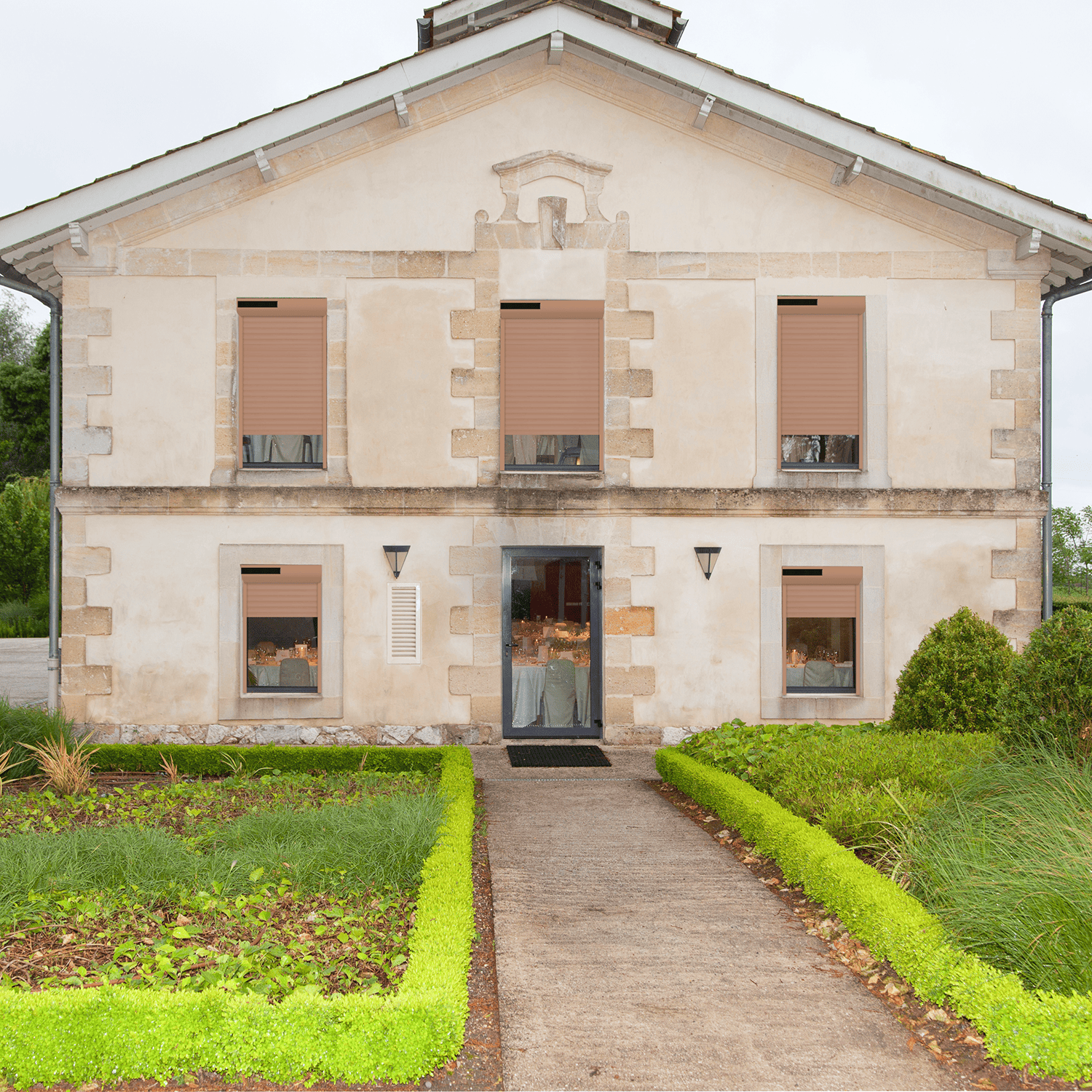 - la pose en applique sur la façade implique que le volet est posé à l’extérieur de l’encadrement de la fenêtre, directement au mur.
